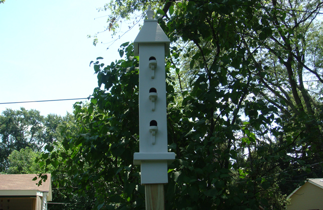 Here’s the birdhouse that we bought at Kane County Flea Market – made by a couple in Moline, IL. It’s really a bird condominium, notice the stacked houses.