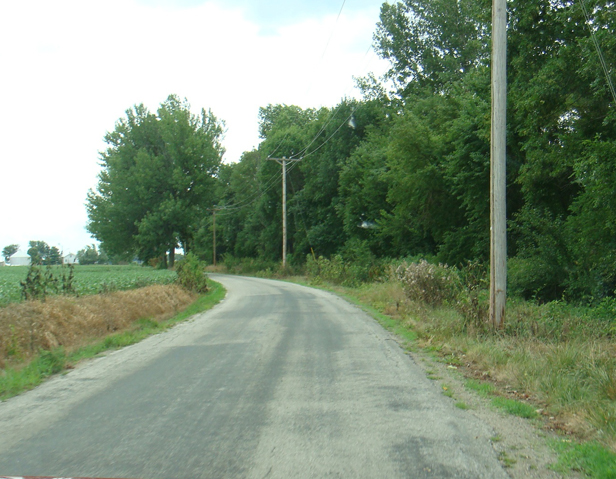 At one point, we were on a road without a center line – like a really country road through the middle of farmland in Indiana. The road curved every which way, and it was really only a one lane road…