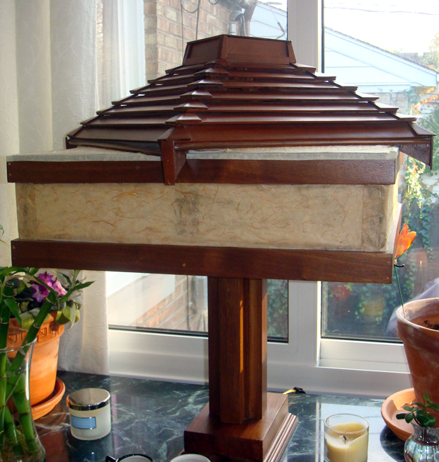 Here’s the second place where a dad-made-lamp appears in our new house. This lamp also has a Frank Lloyd Wright feel to it – and it is really quite large and beautiful.