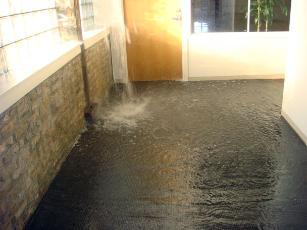 Last week, while working downtown in the loop at my job, we heard a terrible commotion in the hall. We looked down the hall, and saw some water dripping from the ceiling – we’re on the top floor of a 6 story building. Suddenly, the water turned into a veritable flood, like someone above us on the roof had turned on a fire hydrant.
