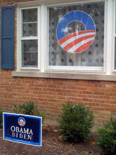 For those of you who have been waiting with bated breath for a photo of our cool, awesome Obama sign, here it is, courtesy of Robert, my dear husband: